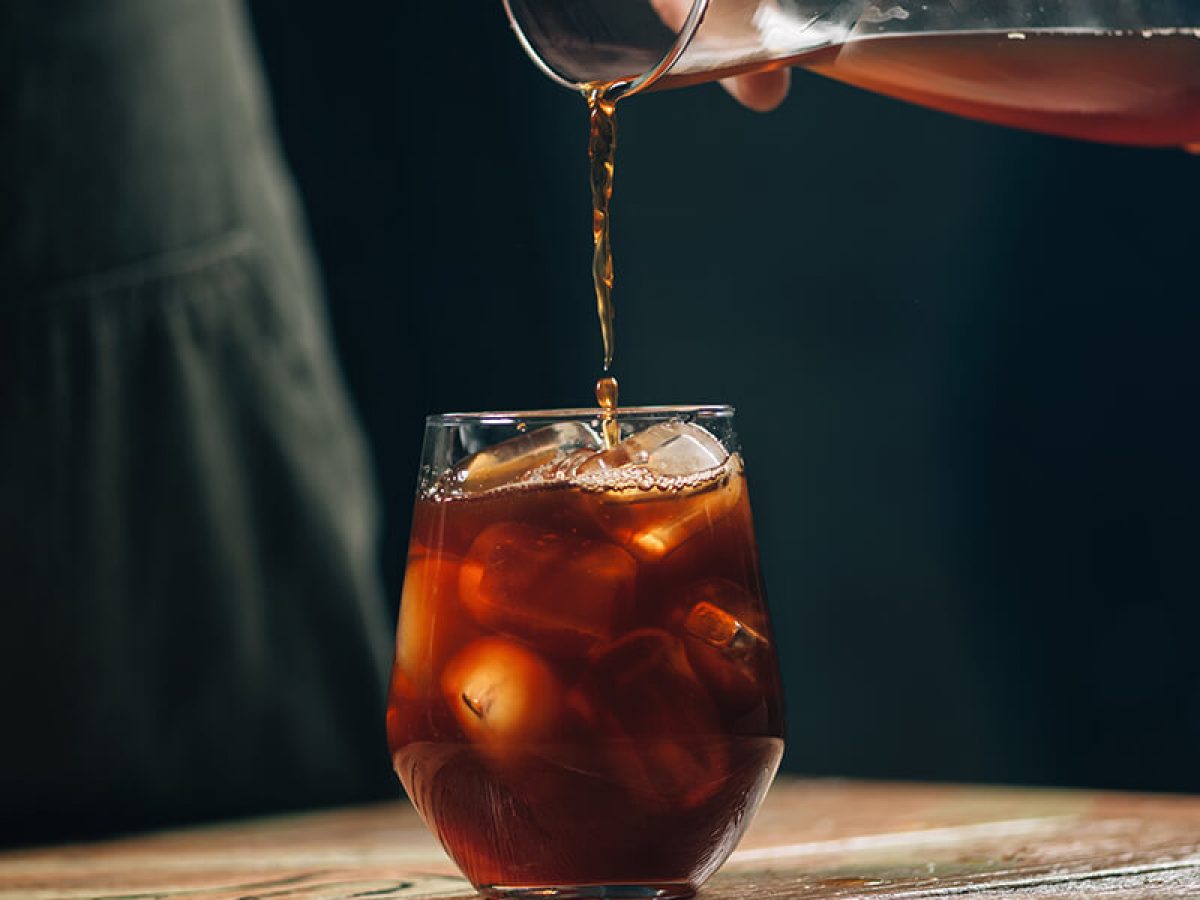 A blend of water and ground coffee is stirred together and allowed to cool overnight. It may take up to 24 hours of brewing to produce a more balanced flavor. Before serving your cup the next day, the coffee mixture is drained to remove any grounded coffee.