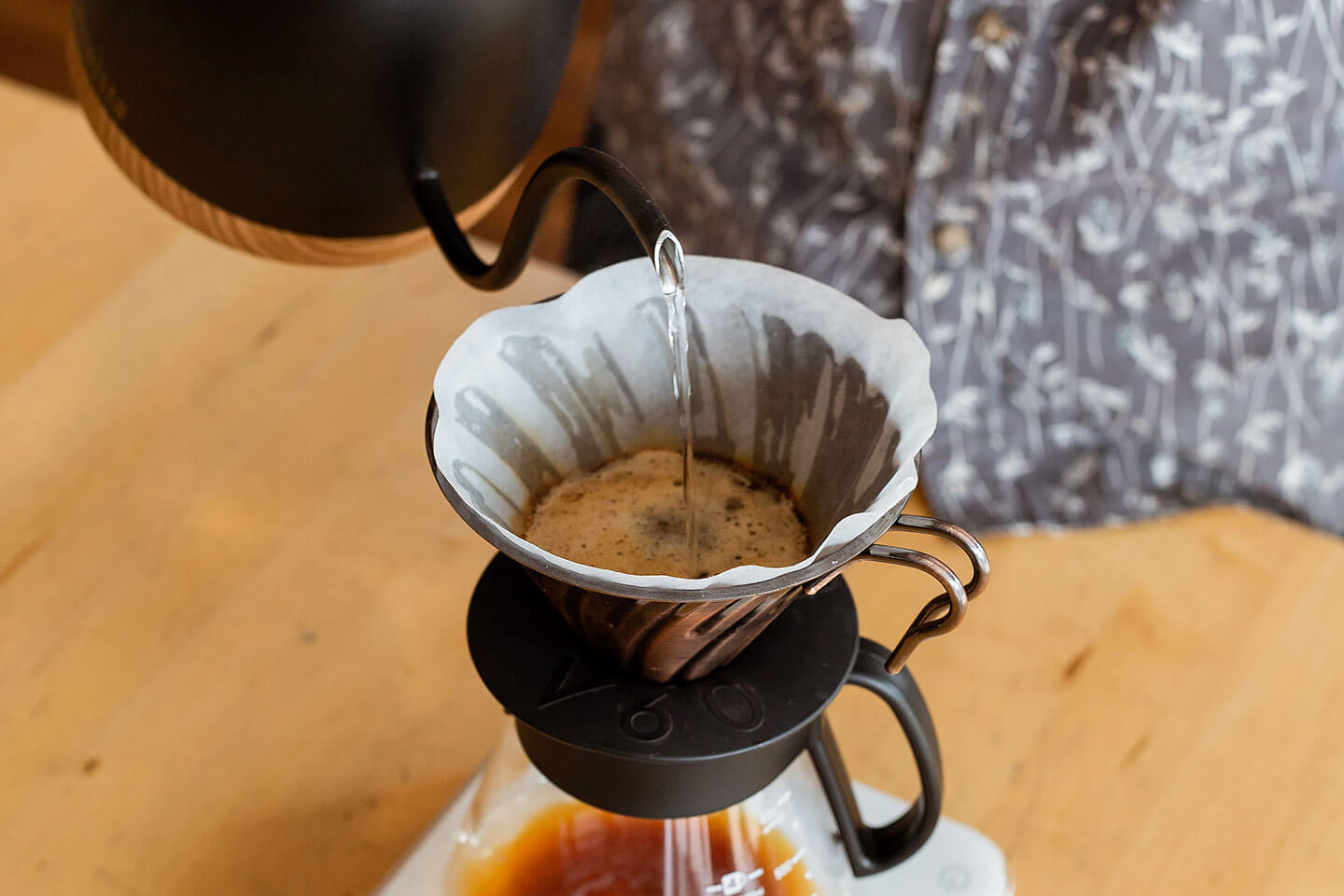 The main difference between filter and espresso is that instead of being pushed through with pressure, the water passes through the coffee grinds due to gravity alone. The brewing process takes a little longer for a somewhat different, yet still exquisite, result. Comparing to espresso, it tends to draw less acidity and emphasizes the coffee’s more delicate characteristics.